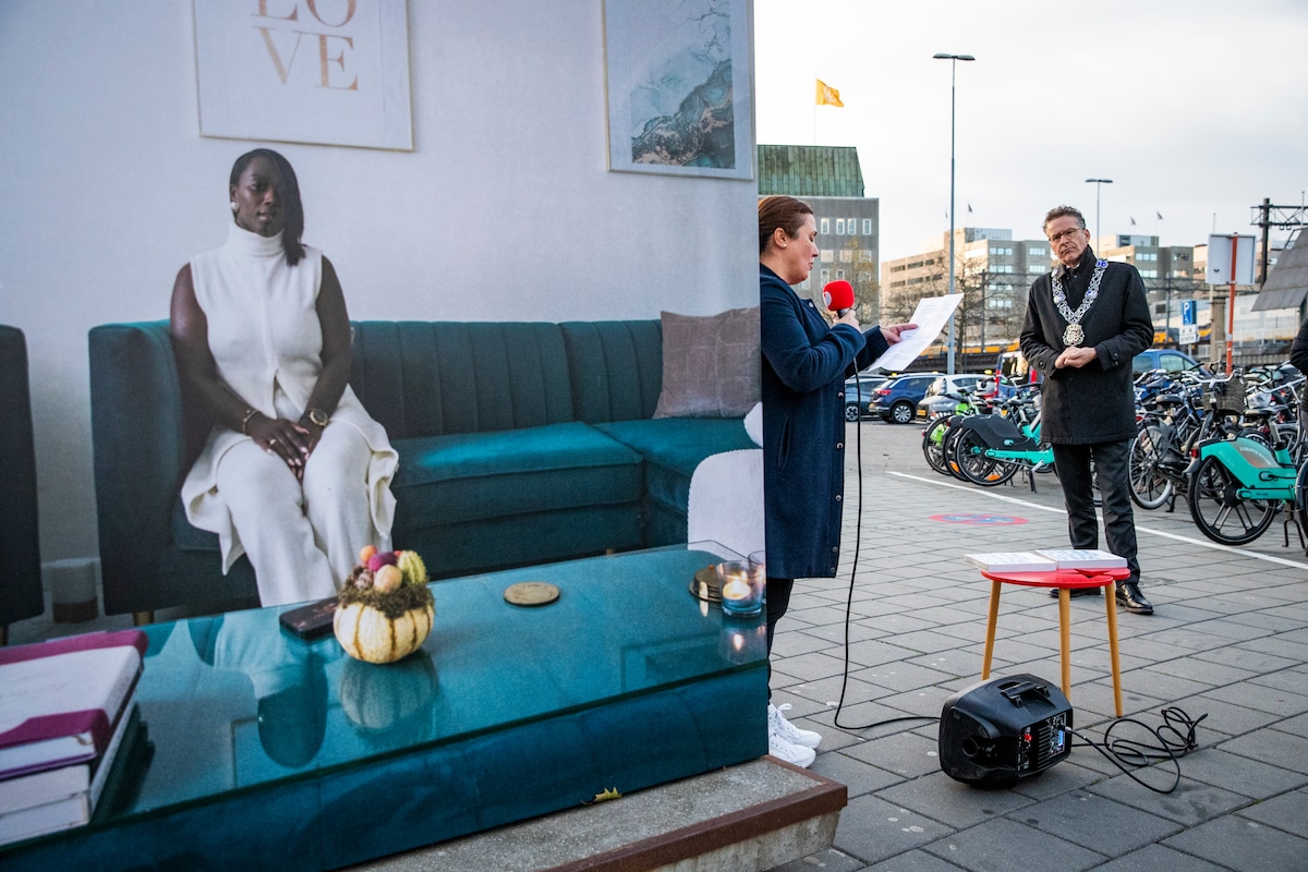 EINDHOVEN - Tussen het station en de Eindhovense binnenstad stuiten inwoners en bezoekers de komende twee weken op levensgrote afbeeldingen van slachtoffers van de toeslagenaffaire. ,,Want het is goed dat we er niet aan voorbijgaan”, zei burgemeester Jeroen Dijsselbloem donderdag.